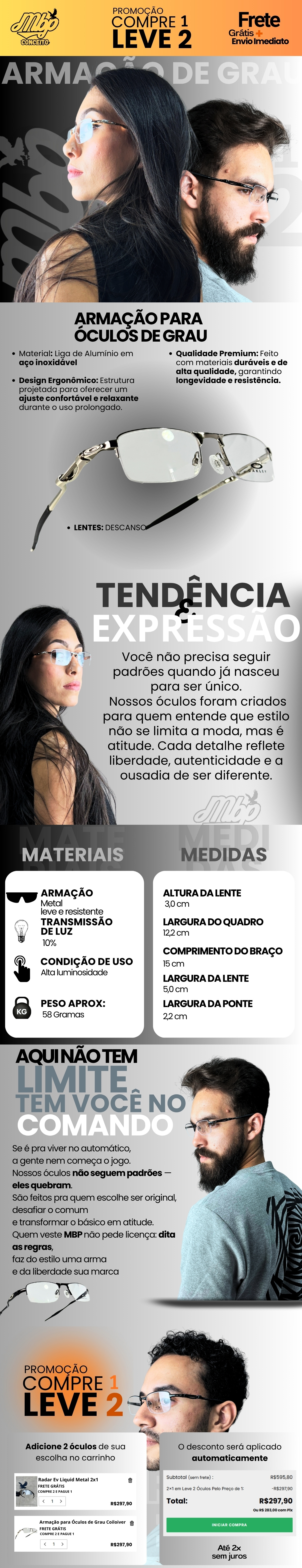 Válido para este produto e todos da categoria: Leve 2 Óculos Pelo Preço de 1.