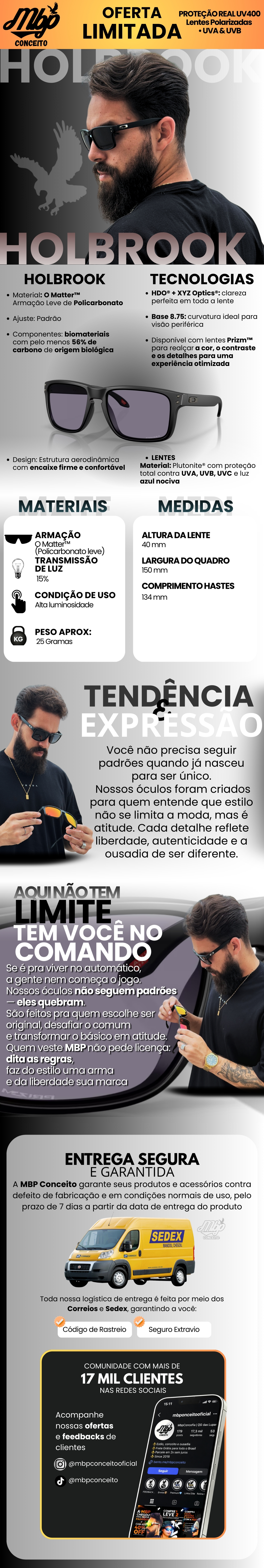 - Todos os pedidos acompanham saquinho exclusivo MBP Conceito™ e flanela de microfibra, garantindo proteção e cuidado com as lentes no mesmo padrão de quem entende de estilo e qualidade.