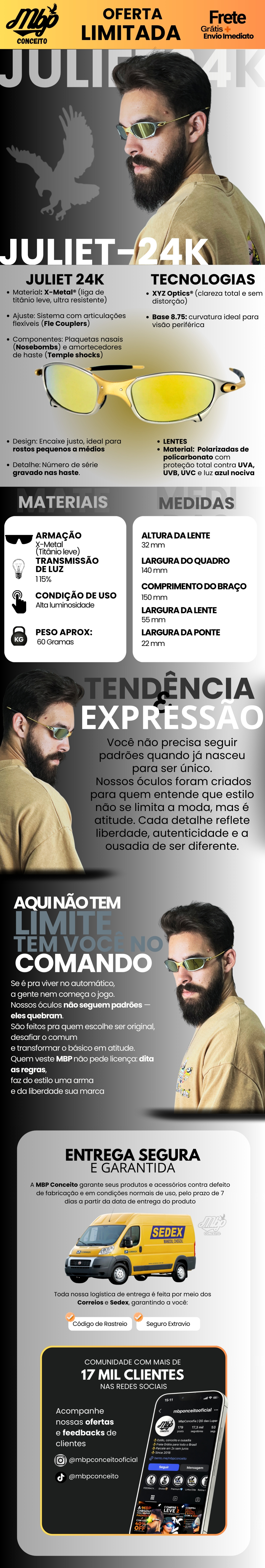 Com certeza! O Romeo 1 faz parte da nossa linha premium MBP Conceito™, reconhecida pela qualidade de acabamento e resistência das armações X-Metal, inspiradas em modelos clássicos de alto desempenho.