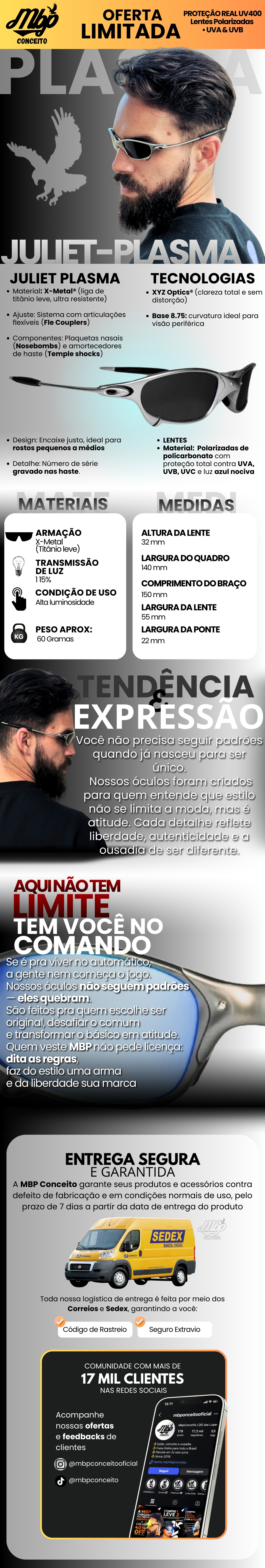 - Todos os pedidos acompanham saquinho exclusivo MBP Conceito™ e flanela de microfibra, garantindo proteção e cuidado com as lentes no mesmo padrão de quem entende de estilo e qualidade.
