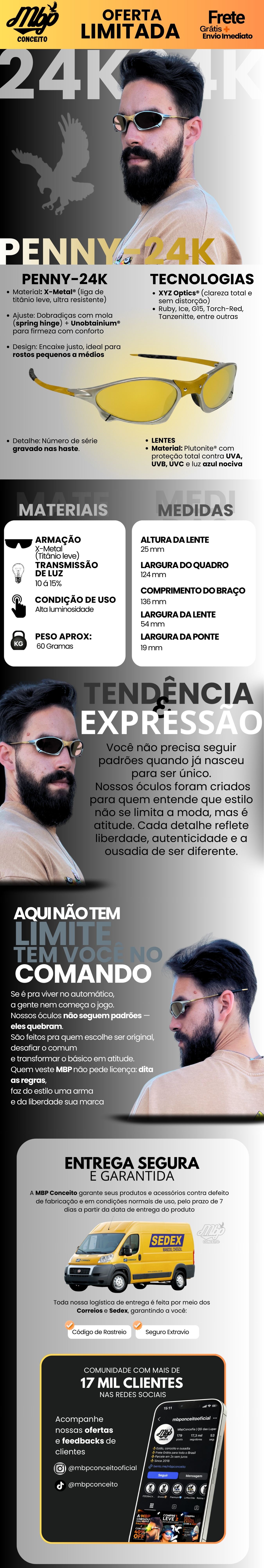 O envio acompanha saquinho exclusivo MBP Conceito™ e flanela de microfibra, pra você cuidar das suas lentes com o mesmo padrão de quem entende de estilo.