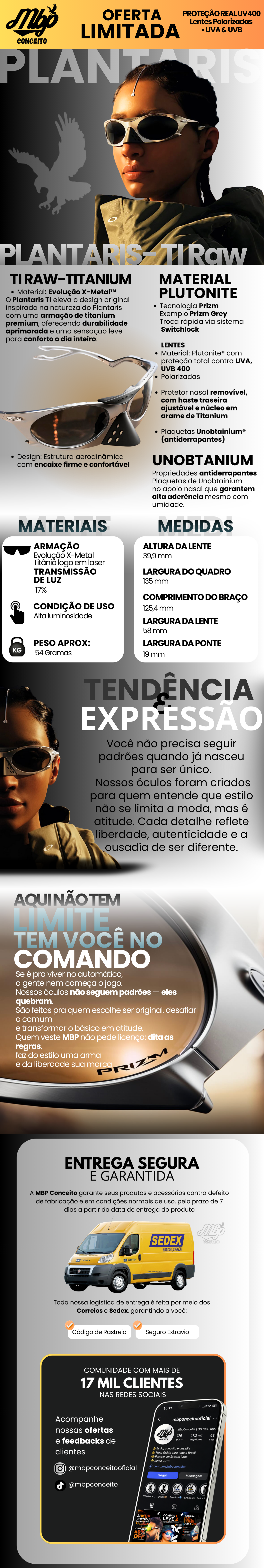 Com certeza! O Plantaris TI eleva o design original inspirado na natureza do Plantaris com uma armação de titânio premium, oferecendo durabilidade aprimorada e uma sensação leve para conforto o dia inteiro. O design da haste ajustável se divide em duas bases inspiradas nos pés de sapos, cobertas por pontas de silicone transparentes exibindo o núcleo de arame que remete a veias. Um cone nasal removível permite que você se adapte ao seu estado de ânimo, enquanto a Tecnologia de Lentes Prizm™ proporciona detalhes de cor aprimorados e contraste onde quer que você vá