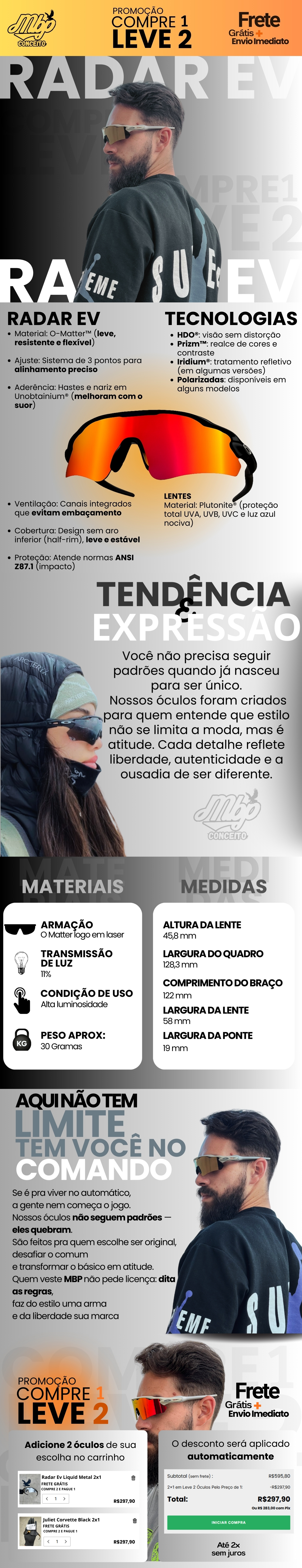Válido para este produto e todos da categoria: 2 Óculos de Sua Escolha pelo Preço de 1.