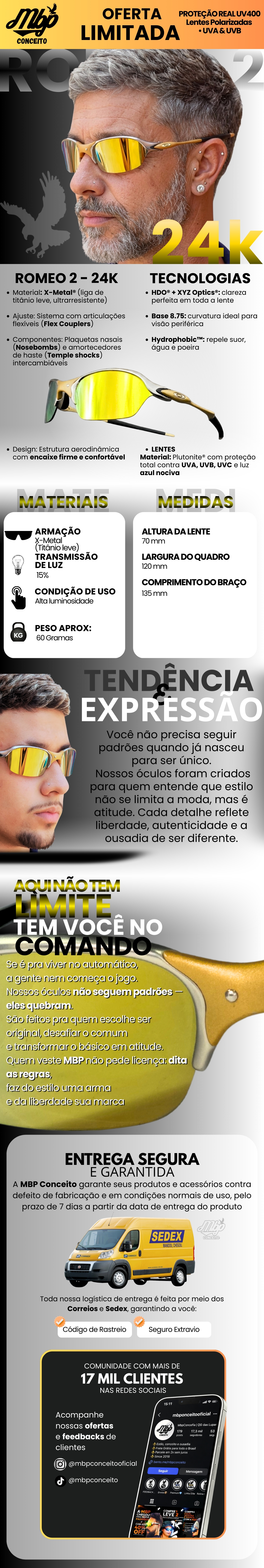- Todos os pedidos acompanham saquinho exclusivo MBP Conceito™ e flanela de microfibra, garantindo proteção e cuidado com as lentes no mesmo padrão de quem entende de estilo e qualidade.